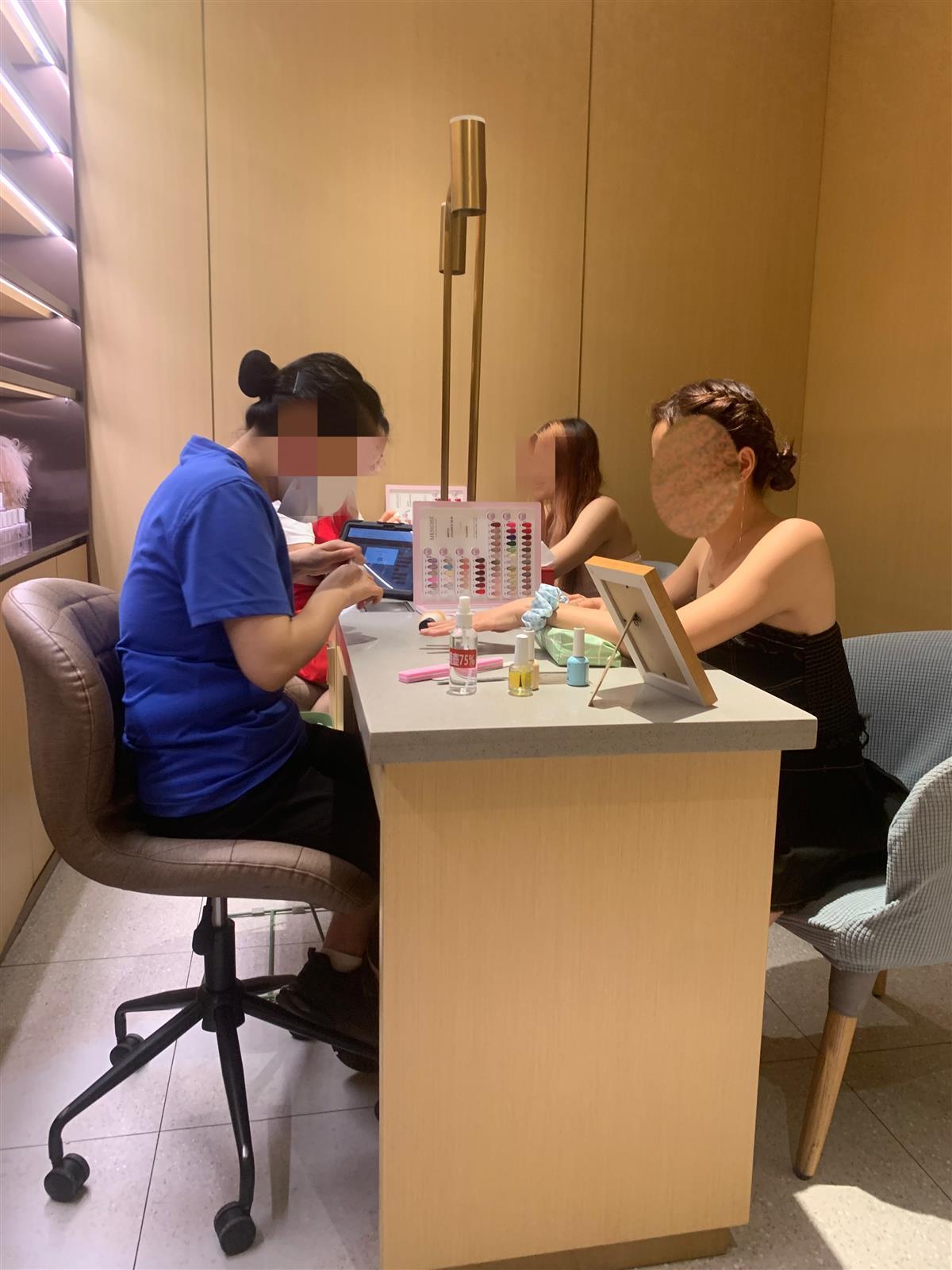 7月29日中午,记者以消费者身份来到武汉海底捞火锅(中心百货店),在美甲专区有两位美甲师正在给客人做美甲。