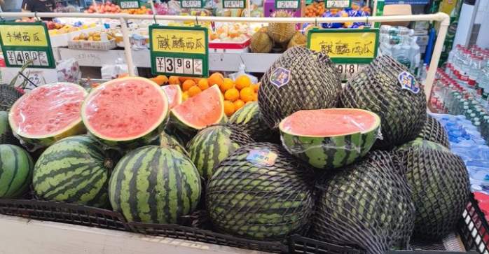 “现在天气热、雨水多,地里西瓜产量减少,进货也贵了不少。”历下区一家生鲜超市老板王女士说,店内售卖的大都是麒麟瓜。其中,麒麟价格每斤在3.5-3.98元之间,甜王价格每斤在1.8-2元之间。“半月前,甜王还曾降至1元一斤;如今,价格已上调至1.8元一斤。”