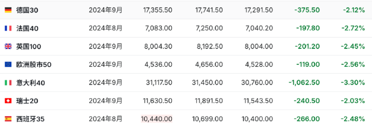 欧股方面,北京时间5日下午,欧洲主要股指开盘集体大幅下跌,欧洲斯托克50指数跌2.94%,德国DAX指数跌2.43%,英国富时100指数跌1.77%,法国CAC40指数跌1.29%。目前主要指数期货均跌超2%。