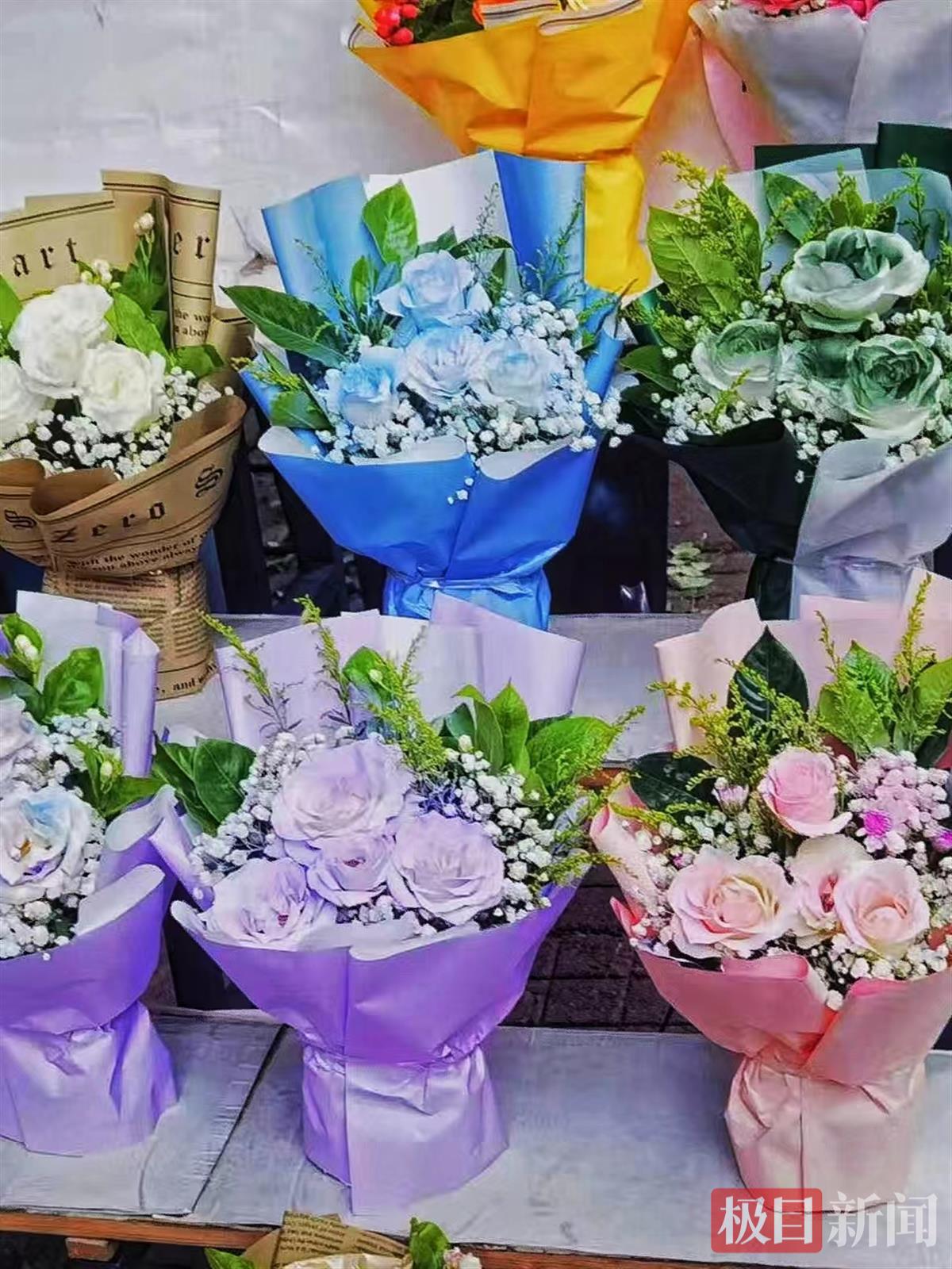 花店摆出的礼品花束(实习生刘沛琳摄)