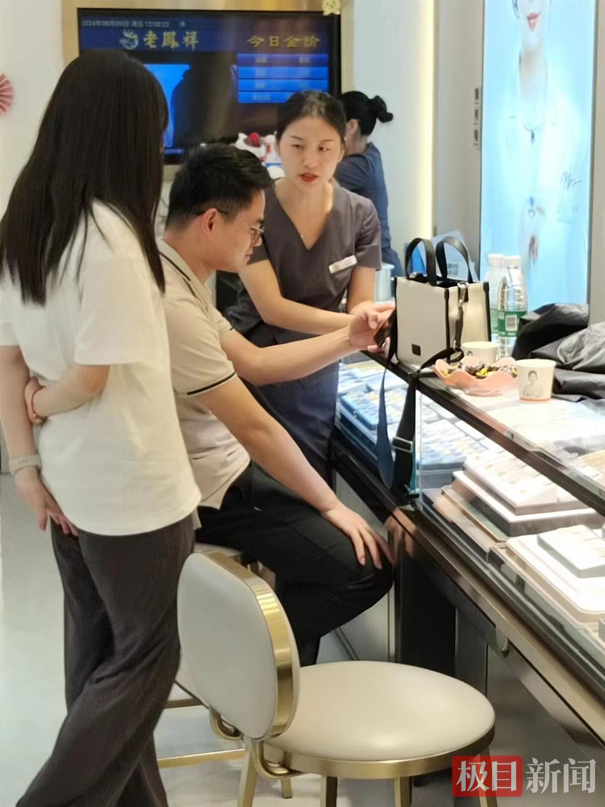情侣挑选黄金饰品(实习生陈岩玉摄)