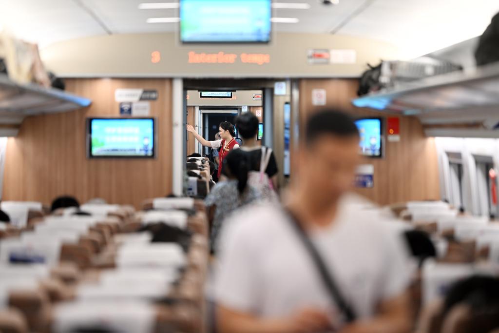 天津客运段数据显示,今年7月,该段共计运送旅客约947万人,相比去年同期增长约4.48%。暑运期间,乘务人员常常清晨五点多就要到岗,直到子夜时分才能收班。