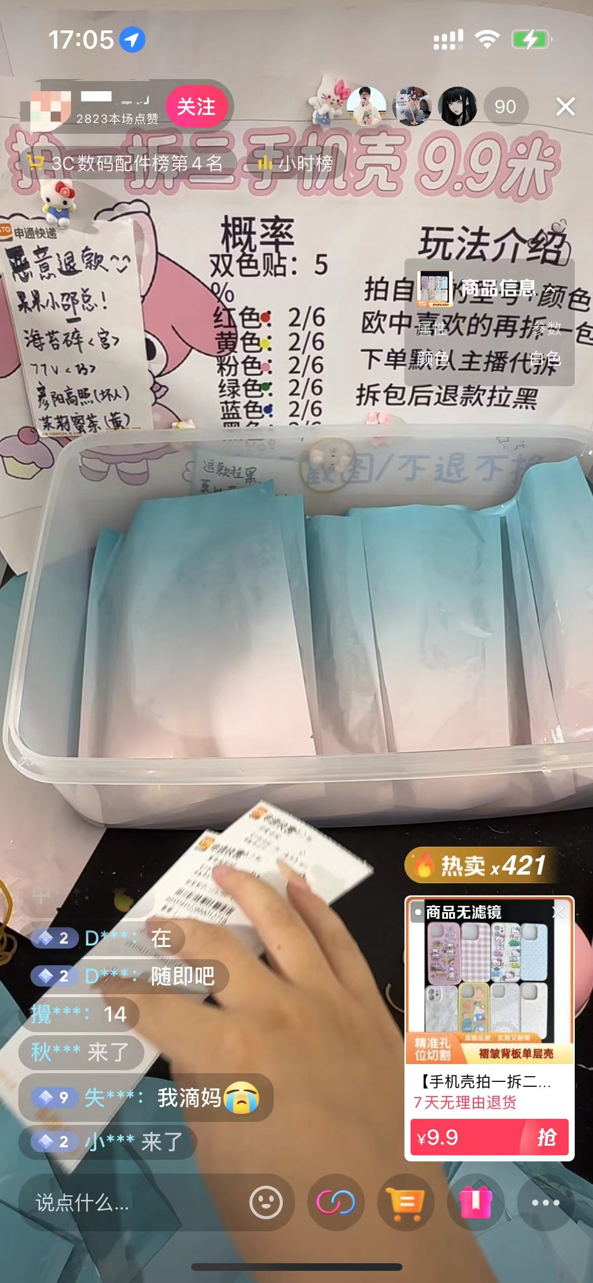 王橙告诉潮新闻记者,她还愿意在“对对碰”类型的直播间消费。她之前在“水果茶对对碰”直播中花费了两百元左右,拆出了两百多包水果茶。“现在还有‘手机壳对对碰’,反正也是必需品。我会优先考虑产品,比如‘内裤对对碰’就免了,内衣还是买质量好的。”