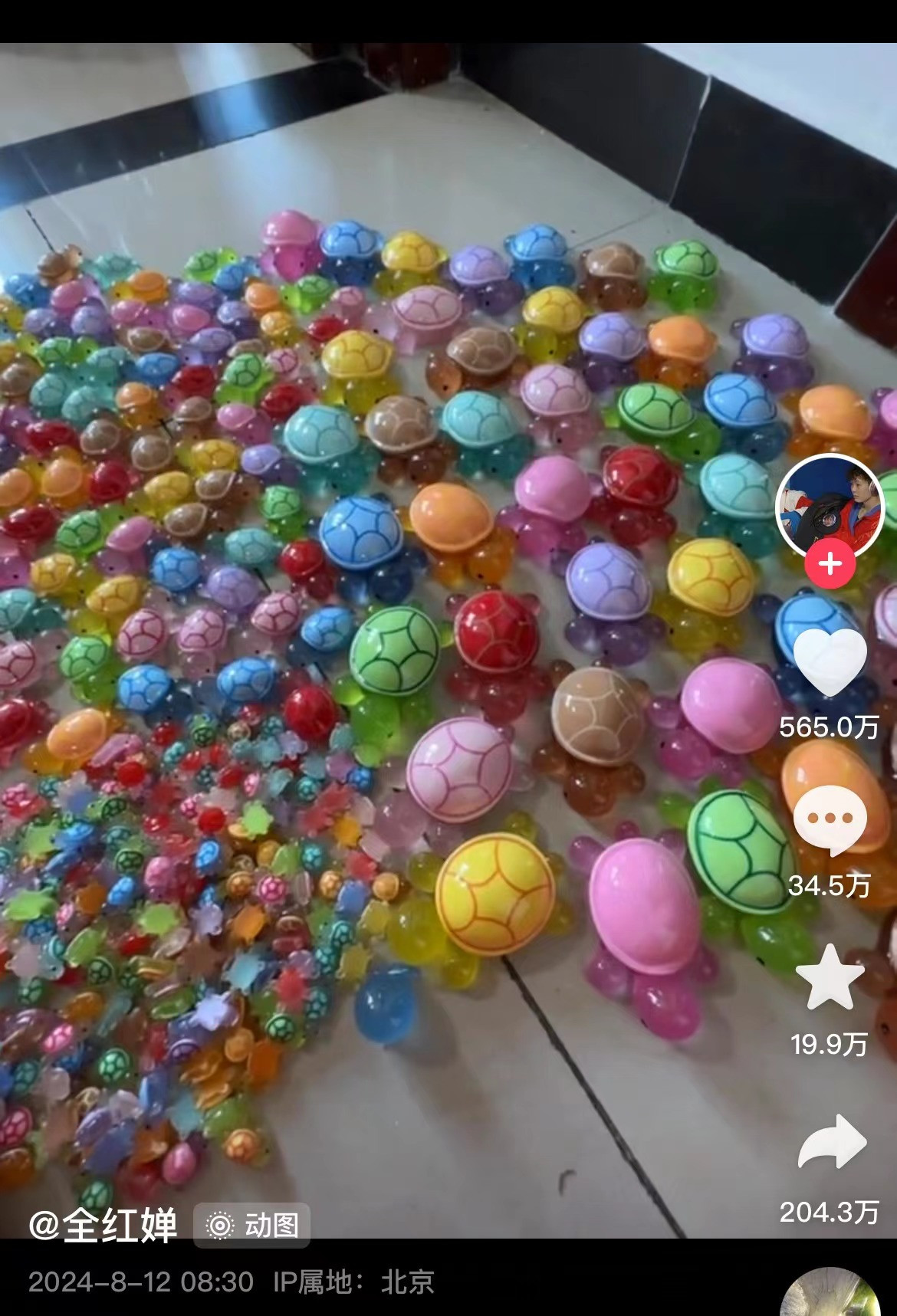 8月12日,在巴黎奥运后收获了两枚金牌后,全红婵在抖音上晒出了她的“乌龟大军”,上百只大大小小的彩色树脂乌龟摆放在地上。此前,有网友发现,全红婵在休息期间出现在“乌龟对对碰”的直播间里,被“硬控”了好几个小时。