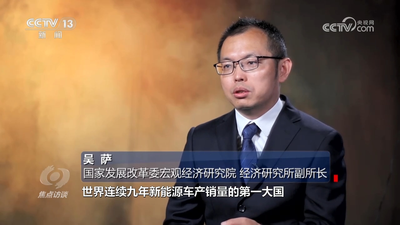 国家发展改革委宏观经济研究院经济研究所副所长吴萨:“我们新能源车产业取得了非常大的发展成就,我们现在已经是世界连续九年新能源车产销量的第一大国,我们的新能源车(2023年)销量超过900万台,在很多技术环节上也居于领先地位,已经形成了一个相对完整的产业体系。”