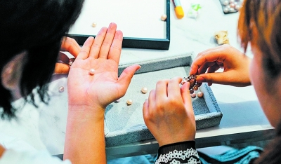 顾客正在挑选珍珠,做成品饰品。来源:网络