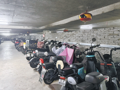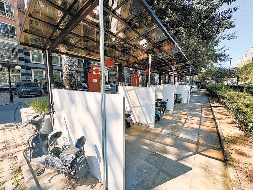 大兴区兴丰街道一处长度约10米的车棚加装了4道隔墙。北京日报记者 张宇摄