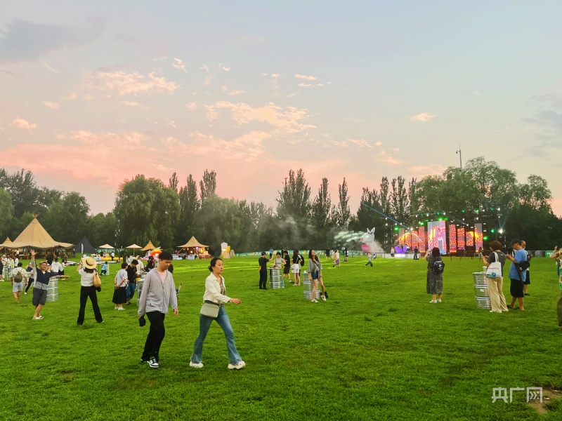 为配合啤酒节活动,打造多元夜消费场景,朝阳公园在方舟湖草坪区域引入音乐复古市集,以泡泡玛特城堡及湖面为背景,结合木屋冰淇淋、网红秋千、天幕舞台、露营体验以及草坪景观等,打造新潮复古融合的生活消费体验场景。