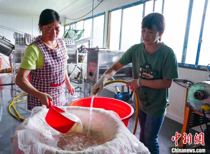 正和搭档抬着桶一起过滤粉浆的55岁村民盘远琴是合作社的一员,“从立春到立秋,百合的种植简单、挖掘方便,让我在打理农田的时候不用太过操心。”盘远琴笑着说,她当初加入“团队”也是看中了种百合销量好、易操作,百合粉150元(人民币,下同)一斤的价格,能让她每年在农闲时增加收入。