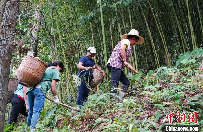8月22日,龙胜县江底乡建新村白腊坪屯种植户上山采挖大叶百合。杨宗盛摄