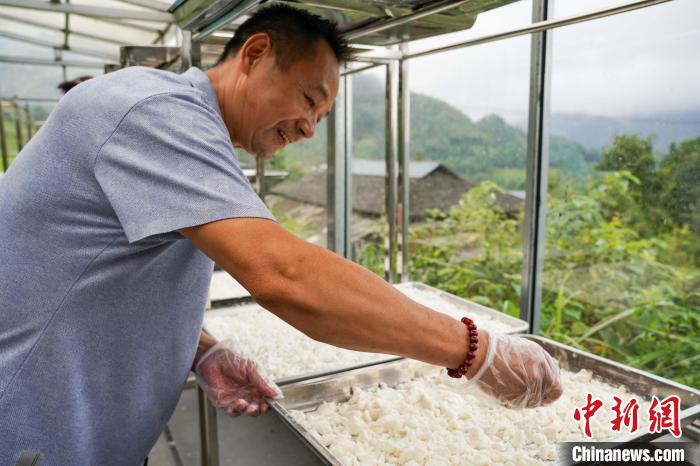 “以前,大叶百合在山上零星生长,乡亲们用传统的方式自行采集加工成粉,放在家中食用,或对外销售。后来,我发现百合粉销路好、价格高,就开始思考大叶百合集中种植、百合粉批量加工的可能性。”在晾晒玻璃房中的冯维峰一边抖散百合粉,一边介绍道,如今合作社也会收购村民的百合鳞茎,进行加工后再销售。
