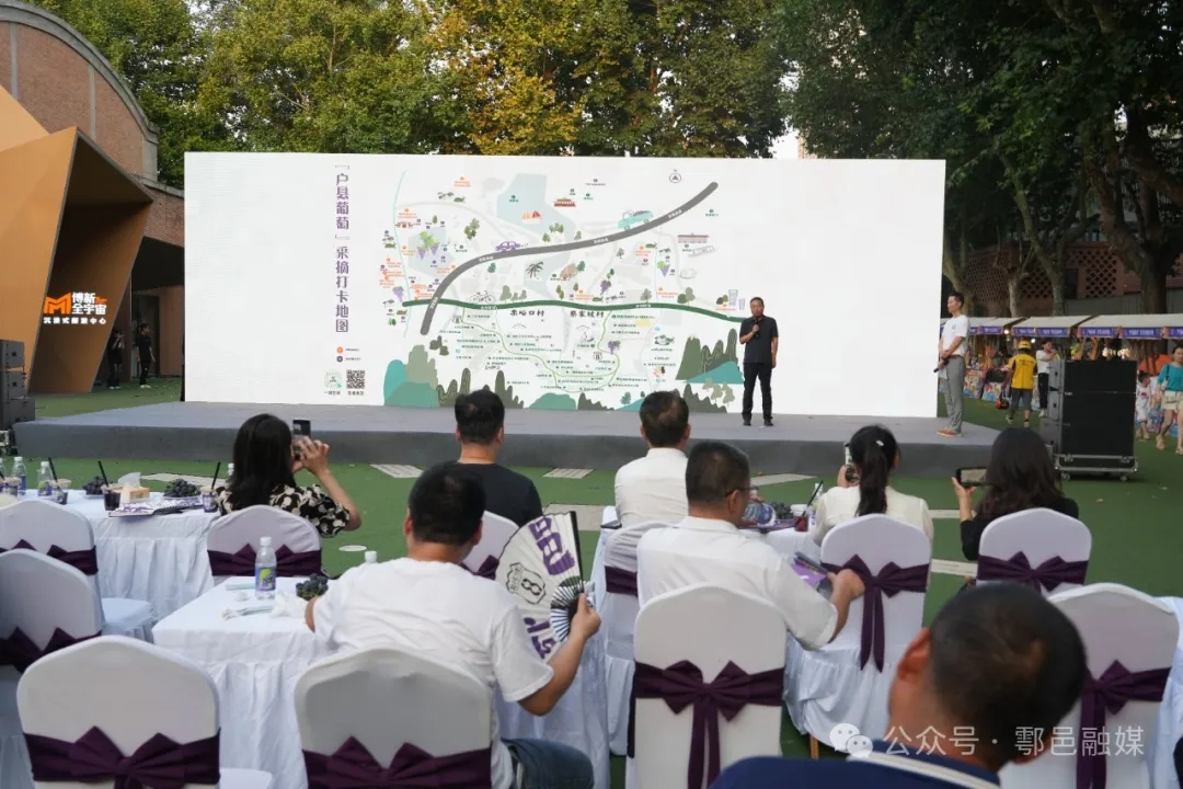 活动现场播放了推介宣传片,全景展现鄠邑区葡萄产业发展;活动组织交流互动,邀请嘉宾上台开启2024年葡萄采摘季,面向市民发布“户县葡萄”采摘季启动暨葡萄采摘打卡地图。