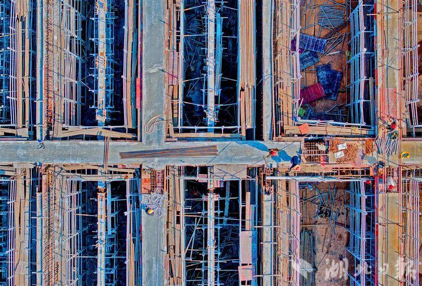 枝江姚家港化工园宜昌海翔药业年产50000吨抗病毒类医药中间体项目现场,钢筋林立、塔吊高悬。(湖北日报全媒记者刘曙松摄)