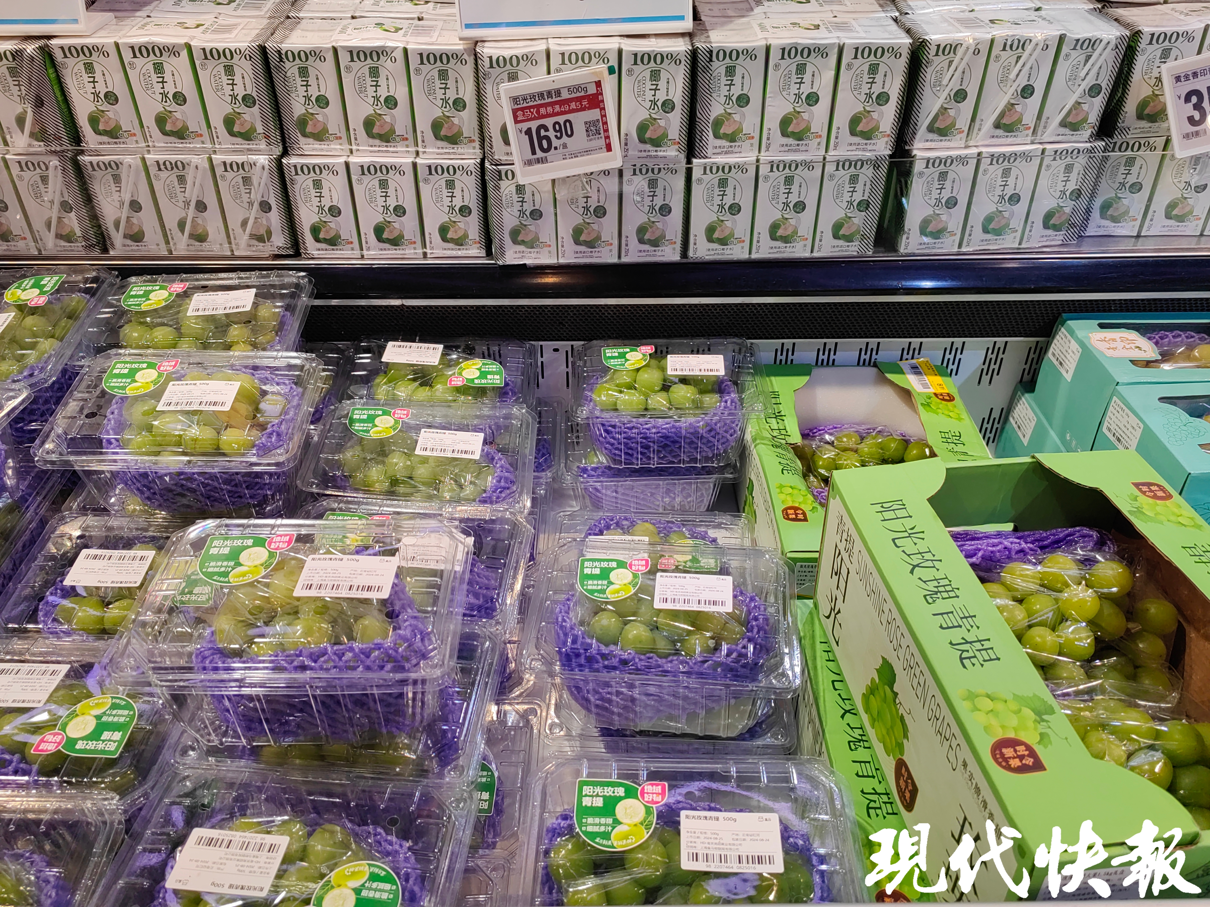 每年七八月是葡萄成熟采摘的时节,其中“阳光玫瑰”品种因玫瑰香浓郁、糖度高、口感好,深受消费者的喜爱。8月26日,现代快报记者走访了南京多个水果店和商超,发现近期阳光玫瑰葡萄的价格大多在6.8元至17元一斤,有的水果摊促销价甚至只卖4.78元一斤。记者又在多个平台查询发现,阳光玫瑰线上的售价在16.9元至20元一斤。相比几年前几十元甚至上百元一斤的价格,阳光玫瑰可谓是“大跳水”了。
