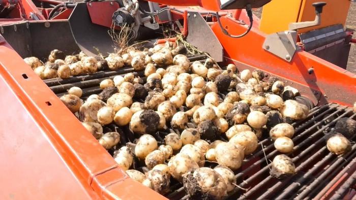 经过收获机初步筛选的马铃薯(央广网发孙建芳摄)