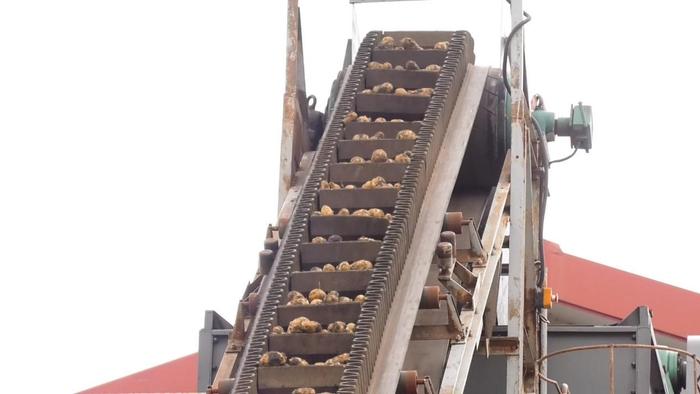 马铃薯被送往加工生产线(央广网发代梦迪摄)