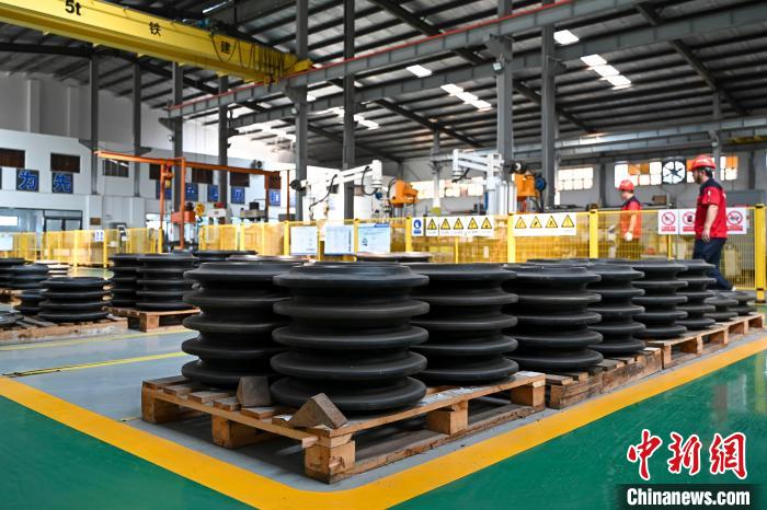 8月28日,广东清远,中国铁建华南清远盾构基地内经过再制造的盾构机刀具部件。 中新社记者陈骥旻摄