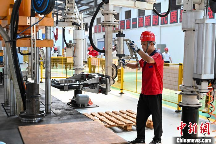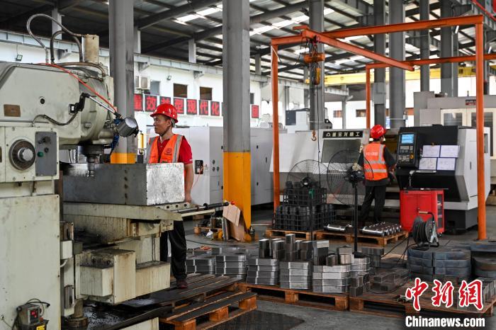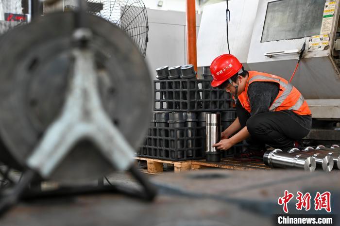 8月28日,广东清远,中国铁建华南清远盾构基地工作人员对盾构机上的旧零部件进行再制造。 中新社记者陈骥旻摄