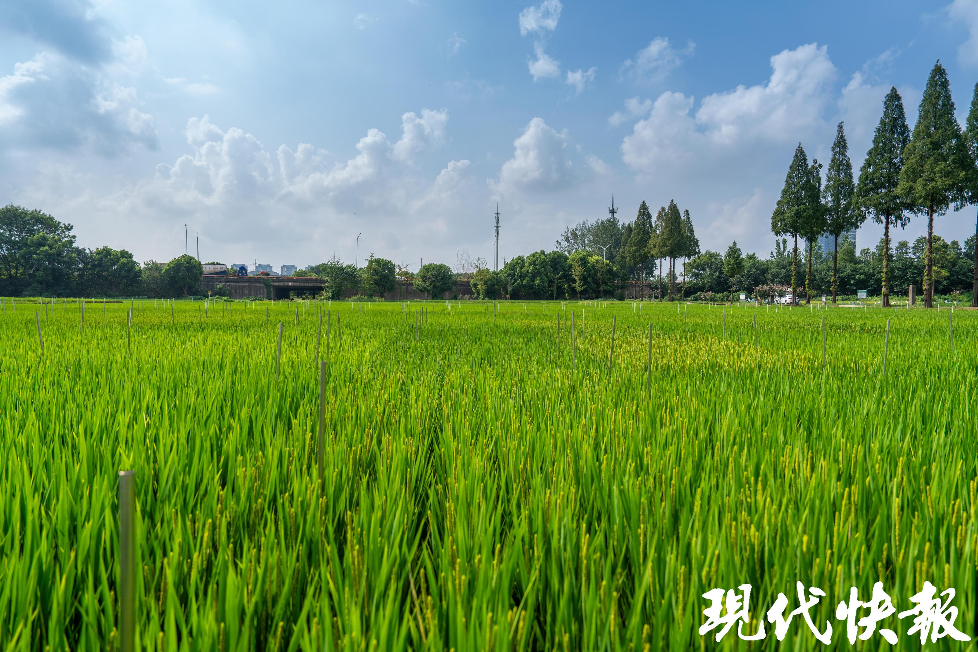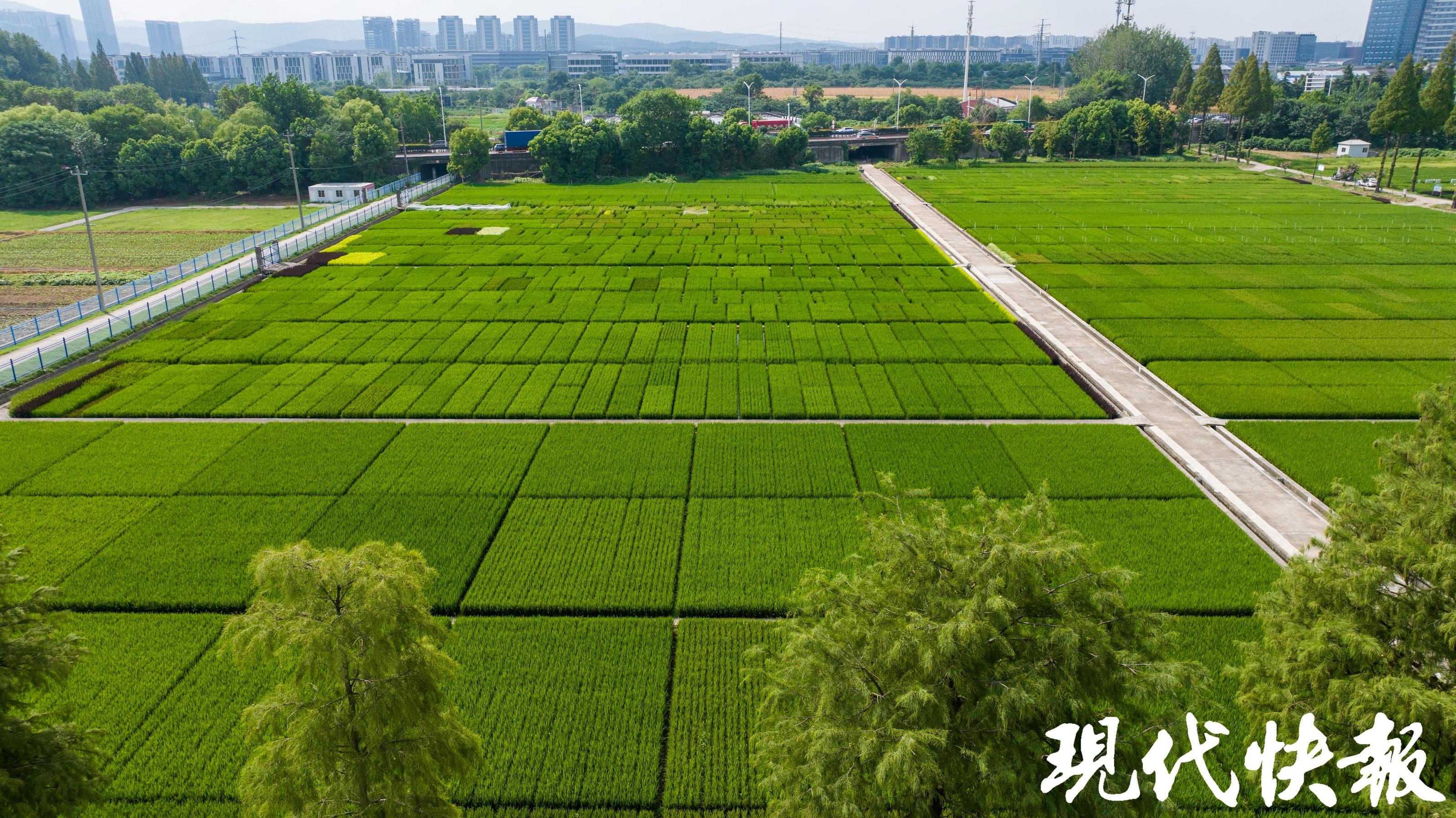 现代快报记者了解到,江苏省农业科学院本部试验田里种植的水稻,是适宜长江中下游各生态区的优质、多抗、适应轻简化栽培的高产粳稻新品种(系)。