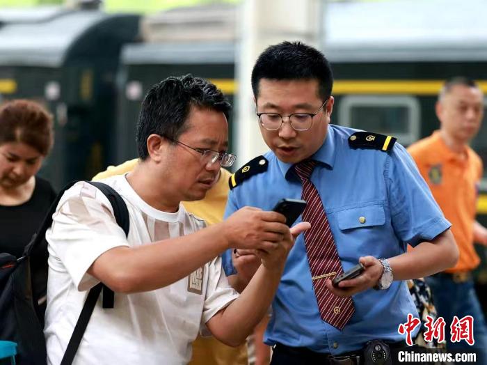 资料图为旅客向乘务人员咨询相关情况。青藏集团公司供图