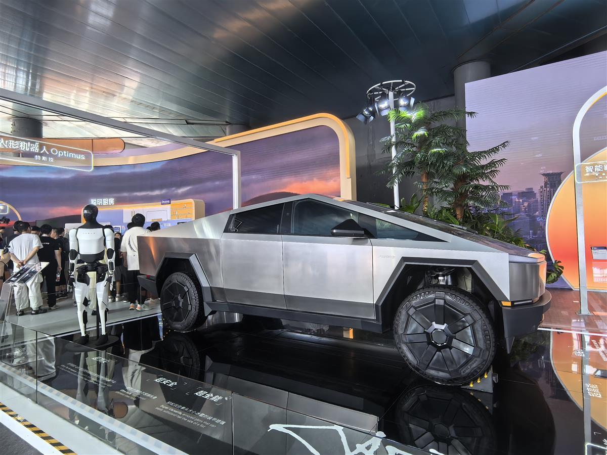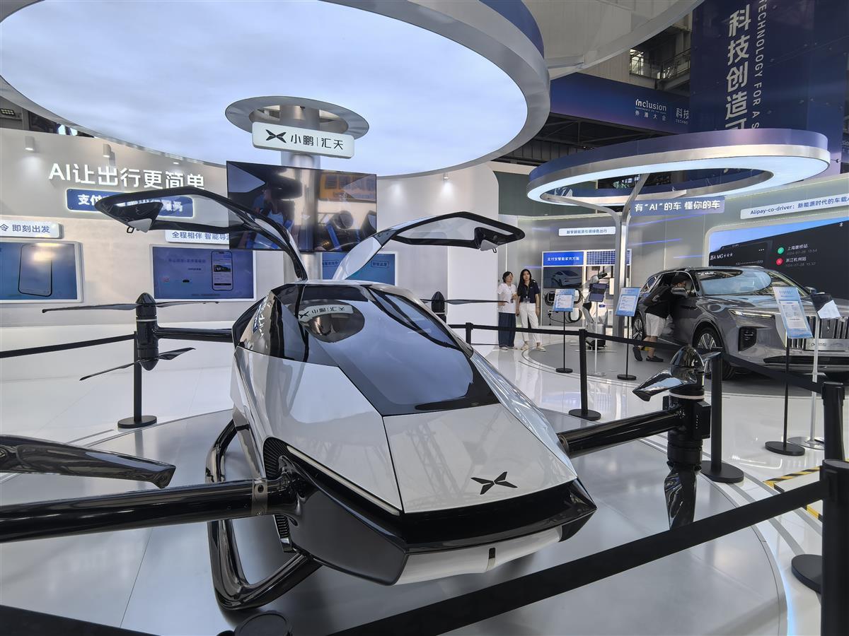 宇树机器人和机器狗、“阿奇”桌面机器人、特斯拉二代人形机器人、小鹏汇天飞行汽车,则让展区更具赛博朋克的风格。