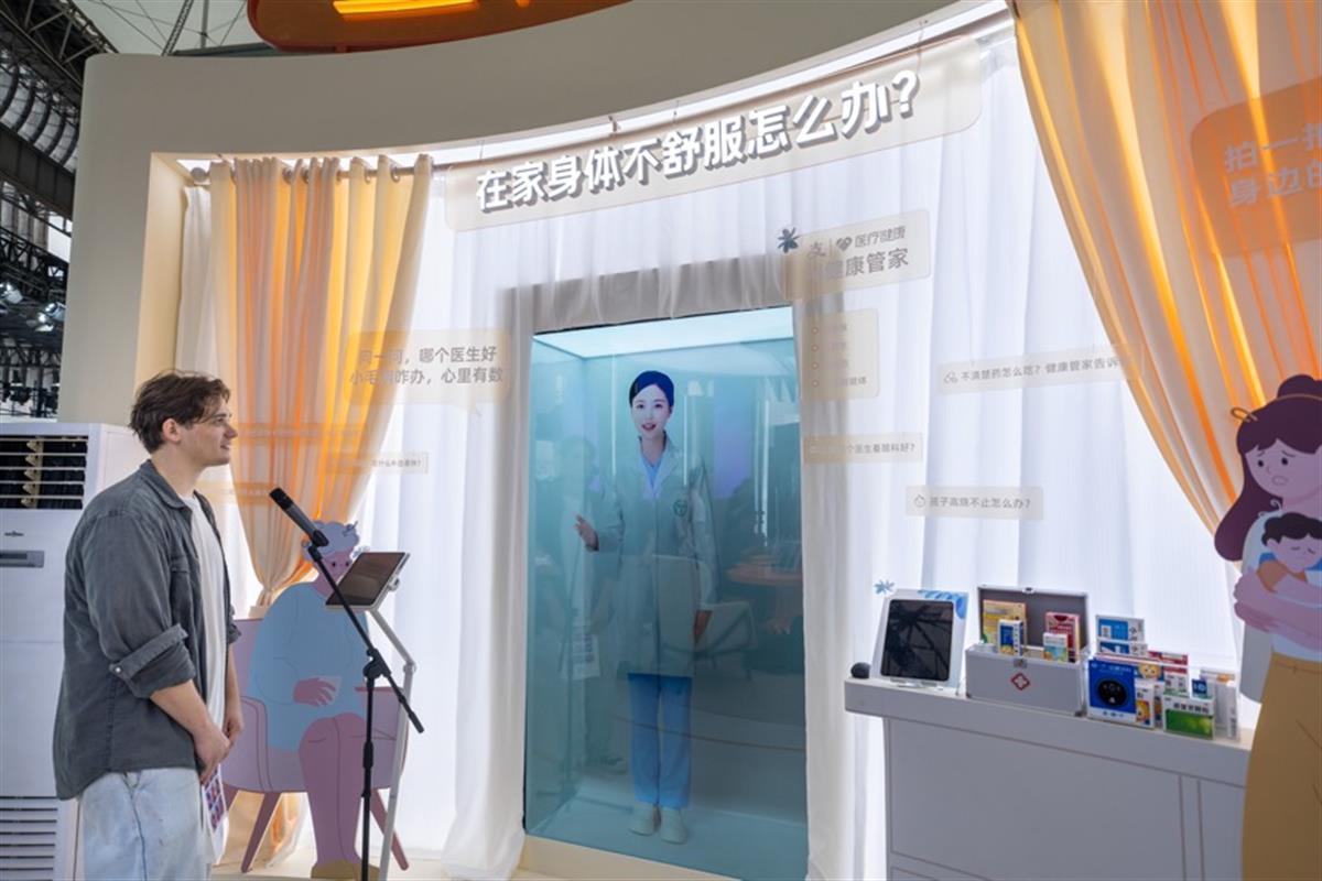 在“未来健康”展区,观众可以体验支付宝AI健康管家提供的AI识药盒、读报告、测毛发等系列家庭健康服务。在模拟的医院环境中,还可以看到全国首个数字健康人“安诊儿”。“安诊儿”由浙江卫健委与支付宝联合推出,利用AI大模型、数字人等技术,帮助医疗机构为患者提供覆盖就医前、中、后的“AI陪伴就诊”服务。这一数字人的推出,也特别为老年人的就医提供了便利。