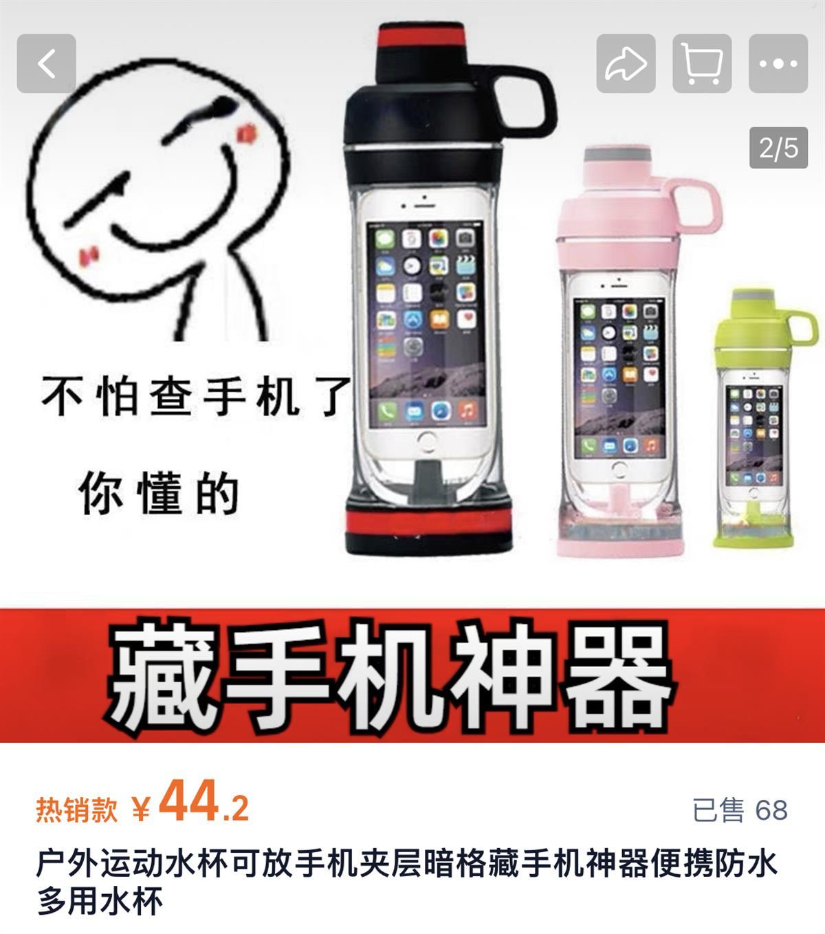 为了让手机模型更逼近真机效果,有商家还推出“亮屏款”仿真手机,即模拟手机低电时自动关机黑屏的过程。此外,各种藏手机“神器”同样热销,这些“神器”外表看着是普通的字典、书本、水壶等,实际中间设计了暗格,能够轻松藏下一部手机。