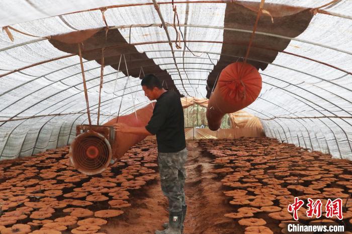 接连的阴雨天气,让种植户们喜出望外。“给家人们看一眼,阴雨天里,灵芝最愿意出粉。”在大棚里直播的种植户兴奋地说着。