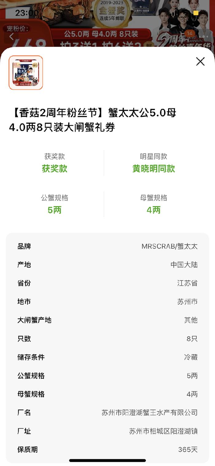 此次风波的导火索,正是辛巴和小杨哥直播间里都在售卖的“蟹太太”牌大闸蟹。淘宝商品详情部分显示,“蟹太太”品牌产地为江苏省苏州市,厂名为苏州市阳澄湖蟹王水产有限公司,厂址为苏州市相城区阳澄湖镇。