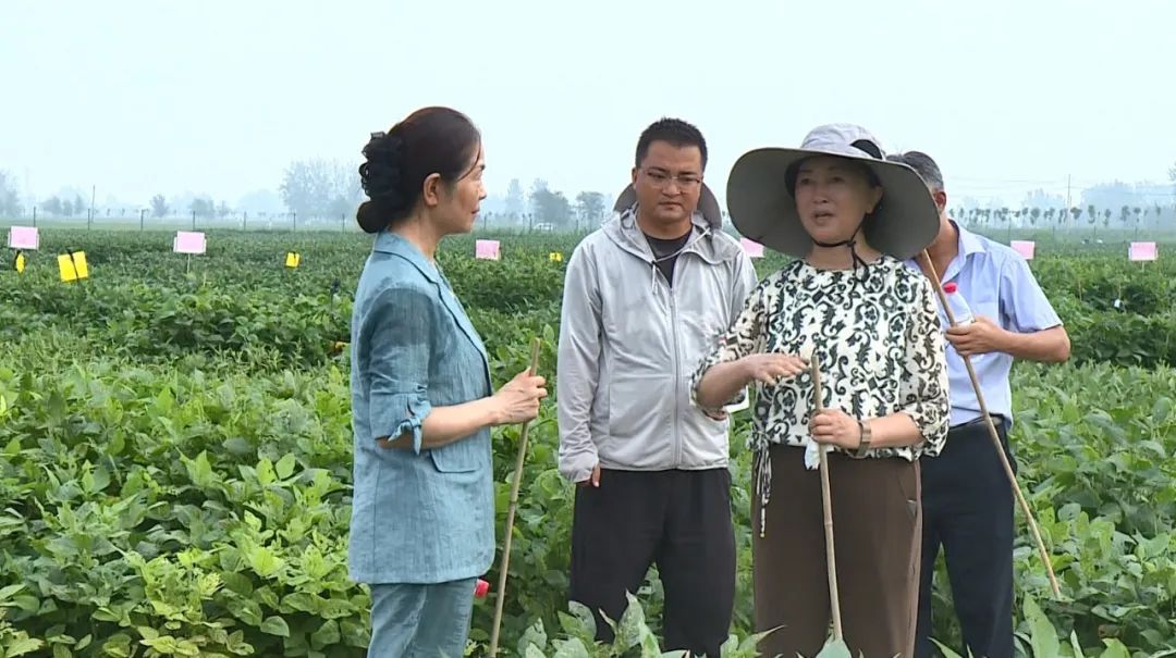中国农科院作科所研究员邱丽娟(右二)等专家在涡阳大豆田间调研