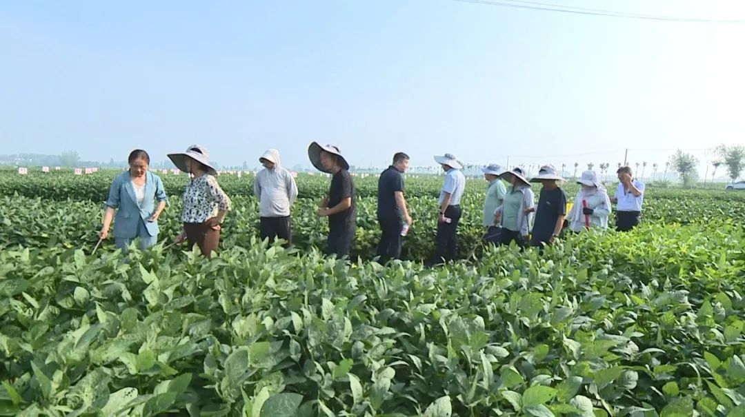 专家在涡阳县国家现代农业产业园科研示范基地的大豆实验田里调研