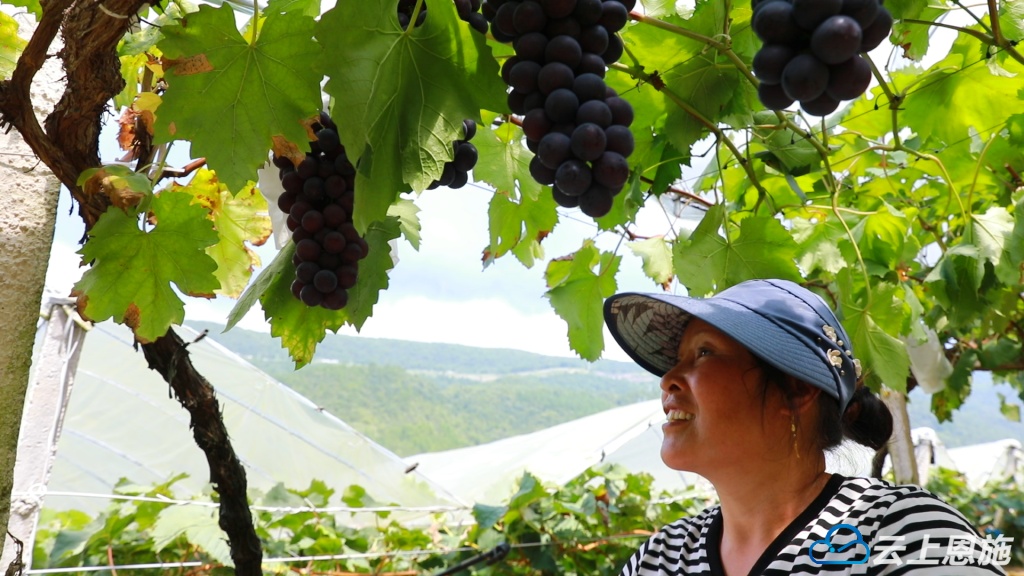 陈文武夫妇是重庆万州人,2018年,已有十多年葡萄种植经验的他们回重庆老家后,几经寻找,终于选定汪营镇齐跃桥村,开始自主发展葡萄产业。经过几年发展,目前已种植八十多亩葡萄,品种涵盖“阳光玫瑰”、“醉金香”、“夏黑”等。良好的销售情况以及每年前来采摘的大量游客,也带动起周边村民发展起一百多亩葡萄园。