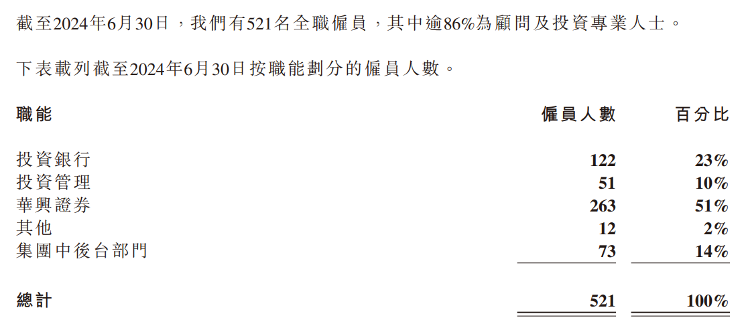 据最新业绩公告显示,今年上半年公司实现总收入和净投资收益合计3.60亿元,同比减少39%;公司拥有人应占亏损7382.2万元,同比收窄59.02%;至本报告期末,华兴资本有521名员工,相比2023年末缩减8%。其中,投资银行有122人,投资管理有51人,华兴证券有263人。