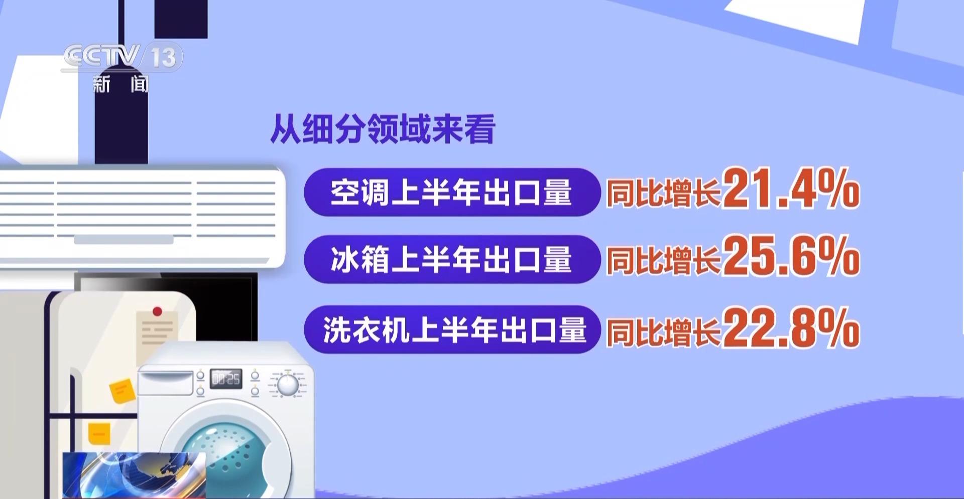 从细分领域来看,空调、冰箱、洗衣机等传统大件家电表现优异,上半年出口量分别同比增长21.4%、25.6%、22.8%。今年6月,空调出口量与去年同期相比,达到接近50%的增幅。