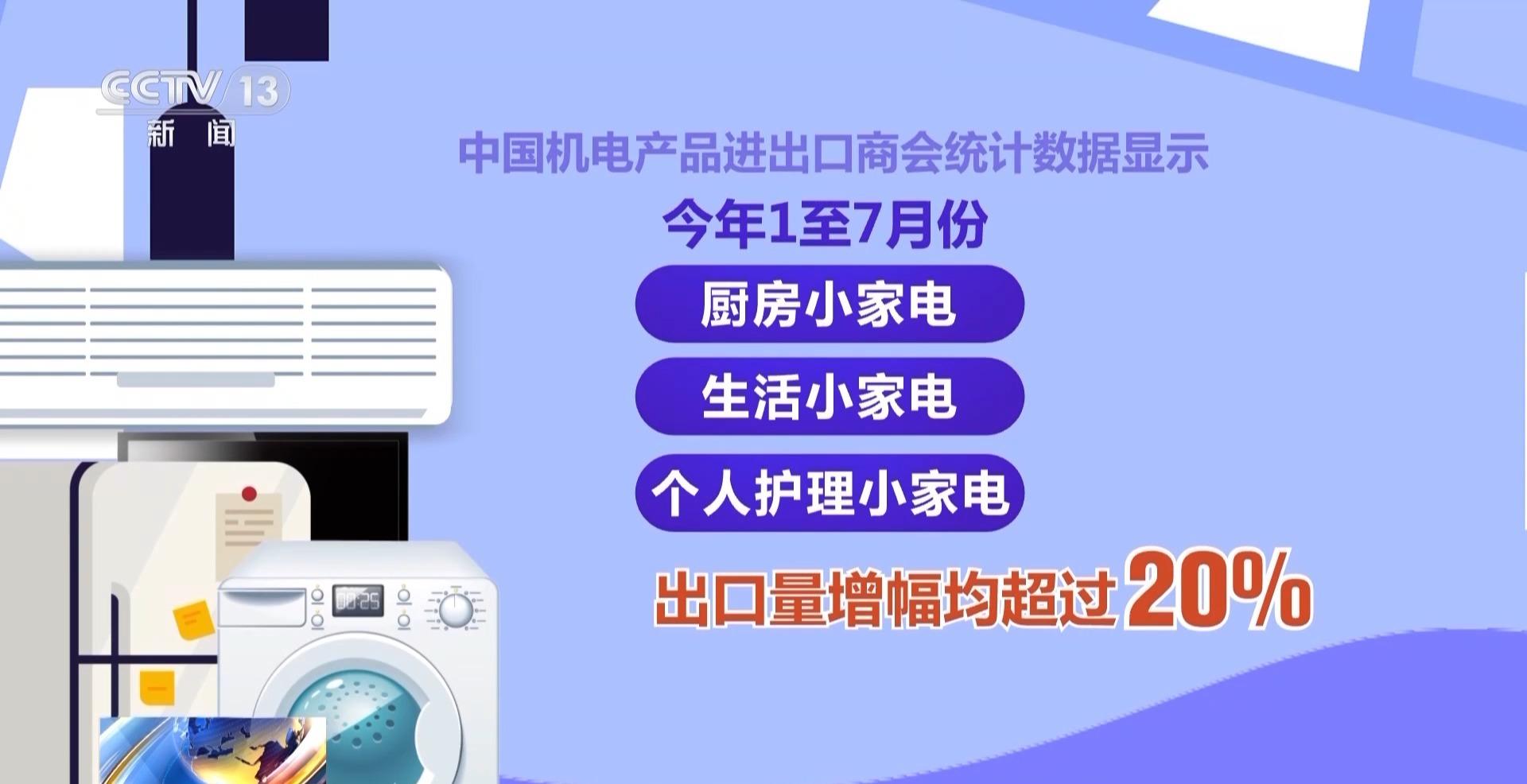 今年,我国家电出口势头强劲。海关总署发布的数据显示,今年前7个月,国产电扇、洗衣机、吸尘器、微波炉、液晶电视等家电累计出口4091.9亿元,同比增长18.1%。从电视、空调等大家电,到个人护理智能“小神器”,中国家电进一步开拓海外市场,在全球“圈粉”。