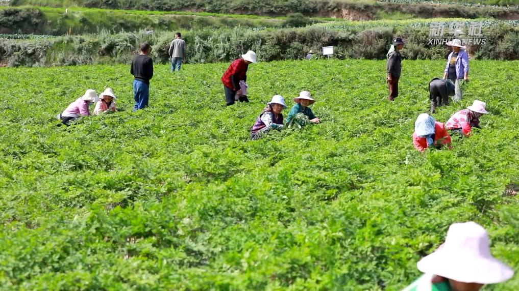 天高云淡,风清气爽,蔬菜与中药材绿意盈盈,绘就了一幅美丽画卷。