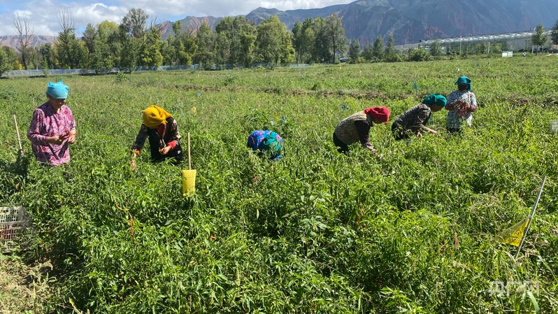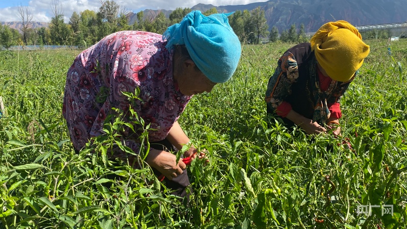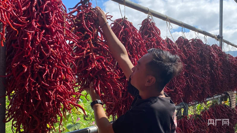 村民采摘辣椒(央广网发 屈斌 摄)