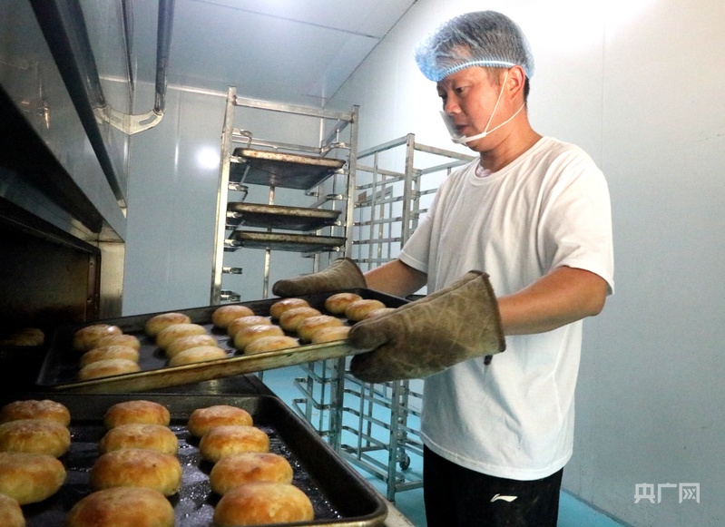 烘烤上色的月饼新鲜出炉(央广网发刘秋雨摄)