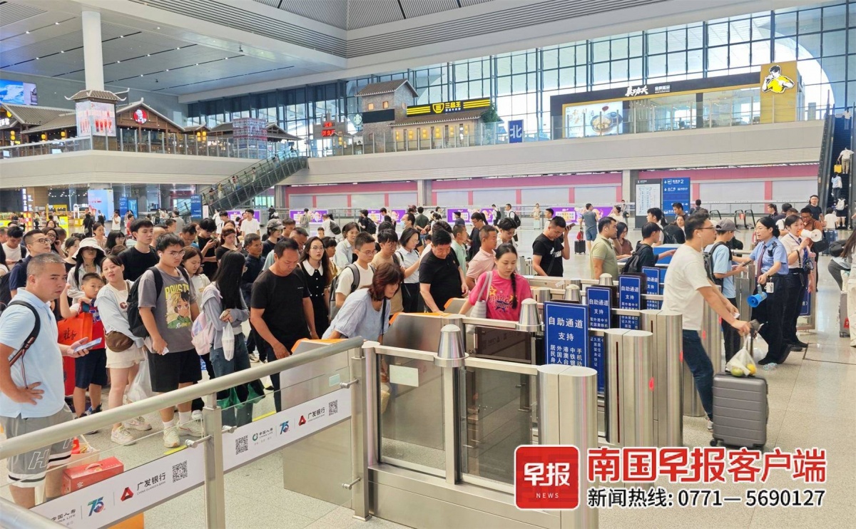 国铁南宁局南宁东站值班站长邓瑞介绍,南宁方面客流以中短途旅游、探亲客流为主,主要流向为桂柳、钦北防、百色、玉林、河池、广州等方向。南宁火车站方面采取普速客车加挂扩编、动车组重联、加开列车等方式扩充运能,满足旅客出行需求。其中,加开桂柳、钦北防、玉林、贵南方向动车16列,广州、玉林、靖西方向加挂、重联6趟,共增加席位2.79万个。