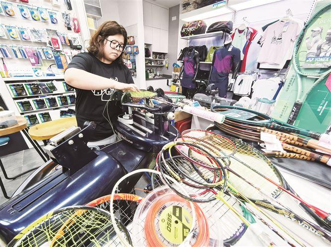 “羽毛球拍穿线量从去年初就有明显增长,而今年进一步增加。就我个人而言,月均穿线量比去年单月增加五六十只。”廖骄娟说。据悉,由于穿线需求持续增加,从去年底至今年初,七星体育添置了2台穿线机,同时招了新的穿线师。