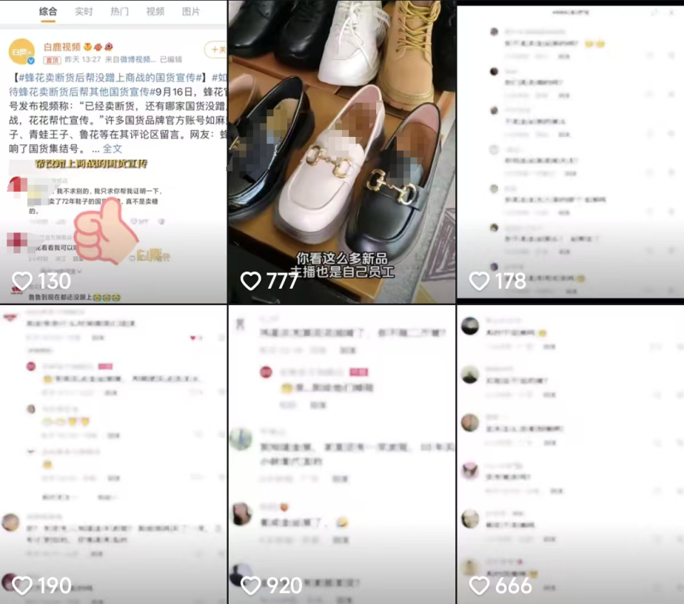 相比于上述国货品牌的人气不减,对于去年一度火过的大多数国货品牌来说,流量褪去渐渐归于平静才是普遍现象。以某鞋类品牌为例,其账号的粉丝数目前为12万多。在去年9月国货集体“团建”中,多条视频的点赞量轻松破百,最高一条920个点赞。