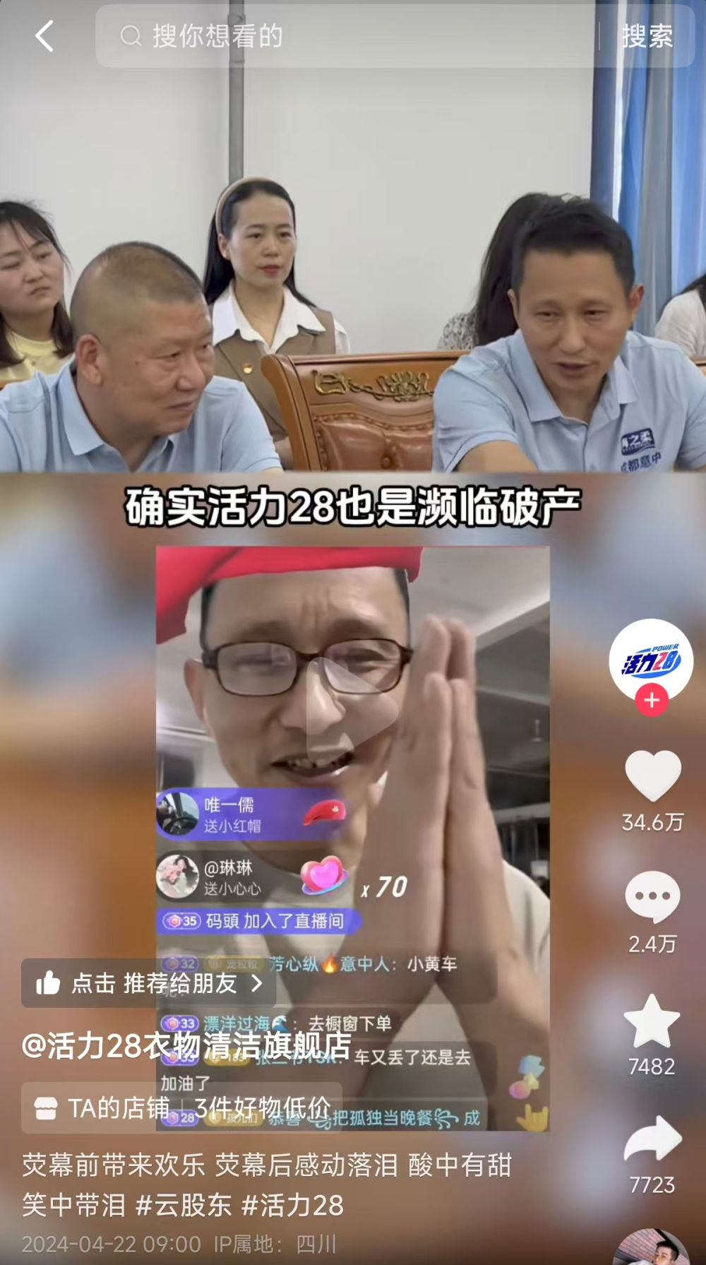 从濒临破产的国货老字号,到千万粉丝的日化“顶流”,活力28毫无疑问是在国货热潮中翻身最成功的一个。当初,三个“小老头”在不熟悉直播流程的状态下开了直播,他们身后堆着洗衣粉,车间里传来风扇噪音,画面也一度卡顿。在直播间,“小老头”称:“我们没有直播的专业团队,我们是临时抽调临时客串的。”他们边学直播规则边卖老牌国货,叫粉丝“孩儿们”,却意外吸引了10万网友涌入直播间,货架商品迅速卖断货。