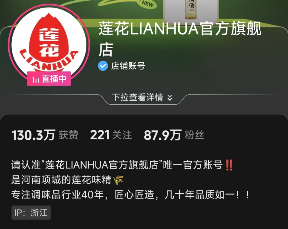 另一个国货品牌莲花味精的粉丝数也达到了87.9万,店铺内销量最好的味精已售242万。