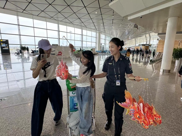 此外,为了让出行旅客在浓厚节日氛围中享受到愉快的出行体验,长春机场举办吉祥物文创月饼品鉴会,为旅客带来了一场视觉与味觉的双重盛宴;地服“金达莱”班组以“雅韵赏月中秋至,华灯耀彩龙嘉情”为主题,连续十四年举办“中秋嘉年华”之“与客同乐”活动,让旅客在旅途中体会到“家”的味道;安全检查部开展“中秋佳节情意浓国门安检送祝福”主题活动,在国际安检现场,精心设计具有“国际范”的安检知识问答游戏,并准备象征着团圆友善、吉祥如意的“中秋小团扇”和文具套装作为奖品,为出行旅客送上诚挚的节日问候,传播中国传统文化。各支线机场也分别结合自身地域特色开展了各具特色的“与客同乐”活动,“快闪舞蹈”、特色月饼等节日系列活动,有效提升旅客出行体验,让中外游客深切感受到吉林的别样风情与魅力。