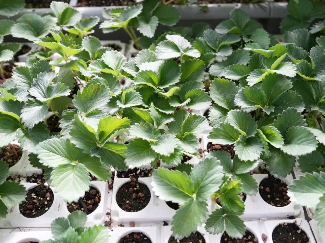 这里的草莓苗,究竟有何特殊之处,引得莓农们争相采购?答案就藏在牛庄村的育苗基地里。基地大棚内配备了智能控温控湿、水肥一体化灌溉设施,精准控制温、光、水、肥,让草莓苗“住”着“单间”,“吃”着基质,“喝”着营养液,从而有效提高草莓苗的生长速度和生长质量。