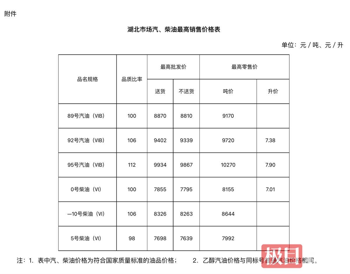 9月20日,湖北省发改委发布公告,湖北成品油价格按机制下调,92号汽油、95号汽油、0号柴油每升分别下调0.29元、0.31元、0.30元,调价后,95汽油价格重返7元时代,为每升7.90元。