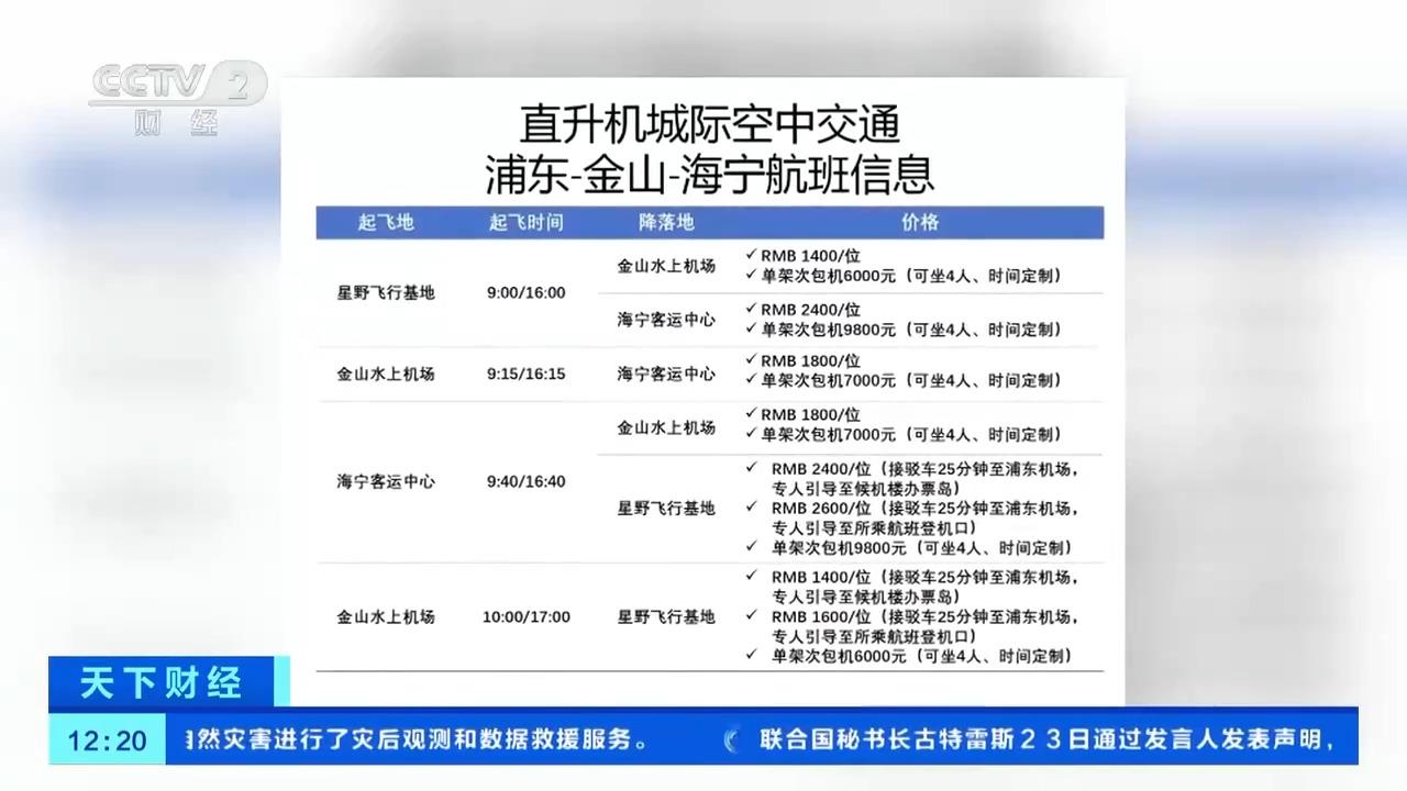 近日,全新的上海浦东至上海金山再至浙江海宁的双向低空载客航线,迎来正式开通前的试飞。记者了解到,新航线在时间上优势明显,以金山到浦东星野飞行基地为例,单程飞行时间不到20分钟,初步定价为单程每位最低1400元。
