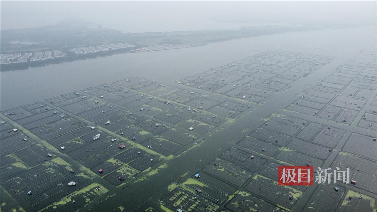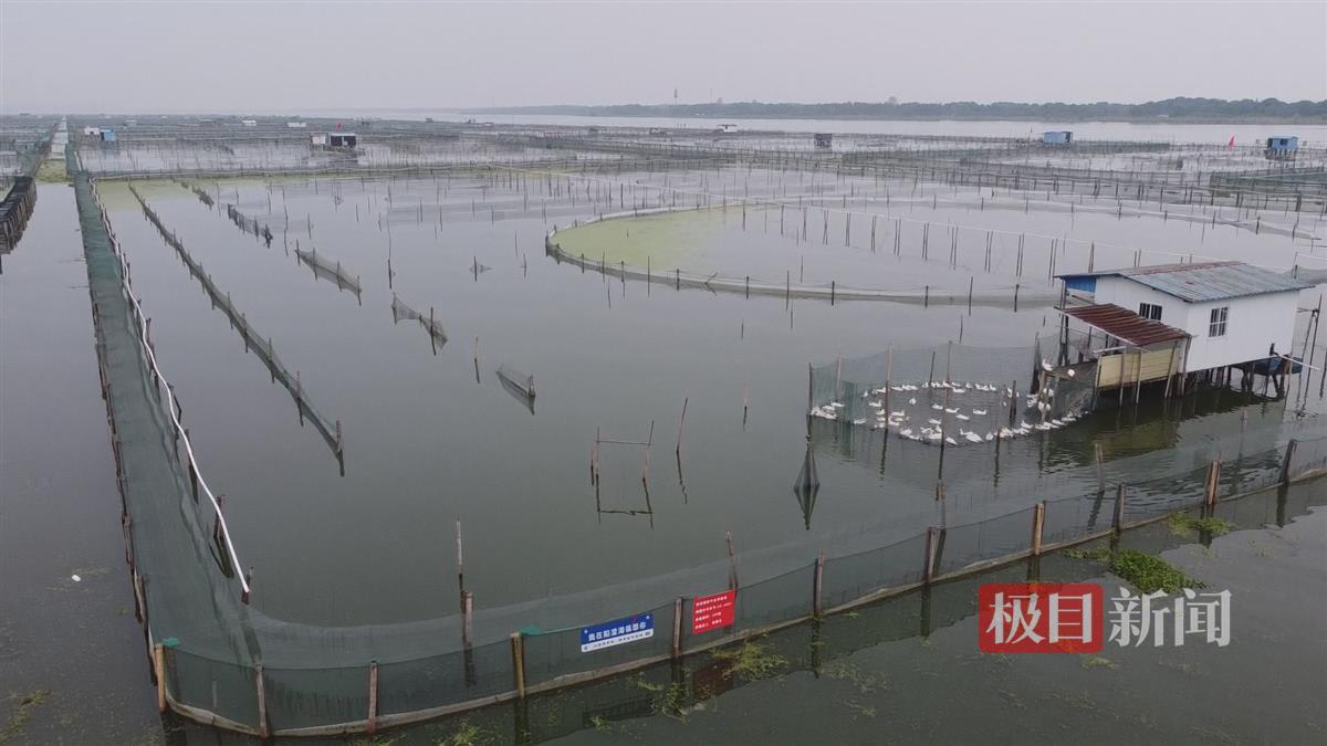 徐根生家位于阳澄湖中湖的围网养殖区(航拍画面)