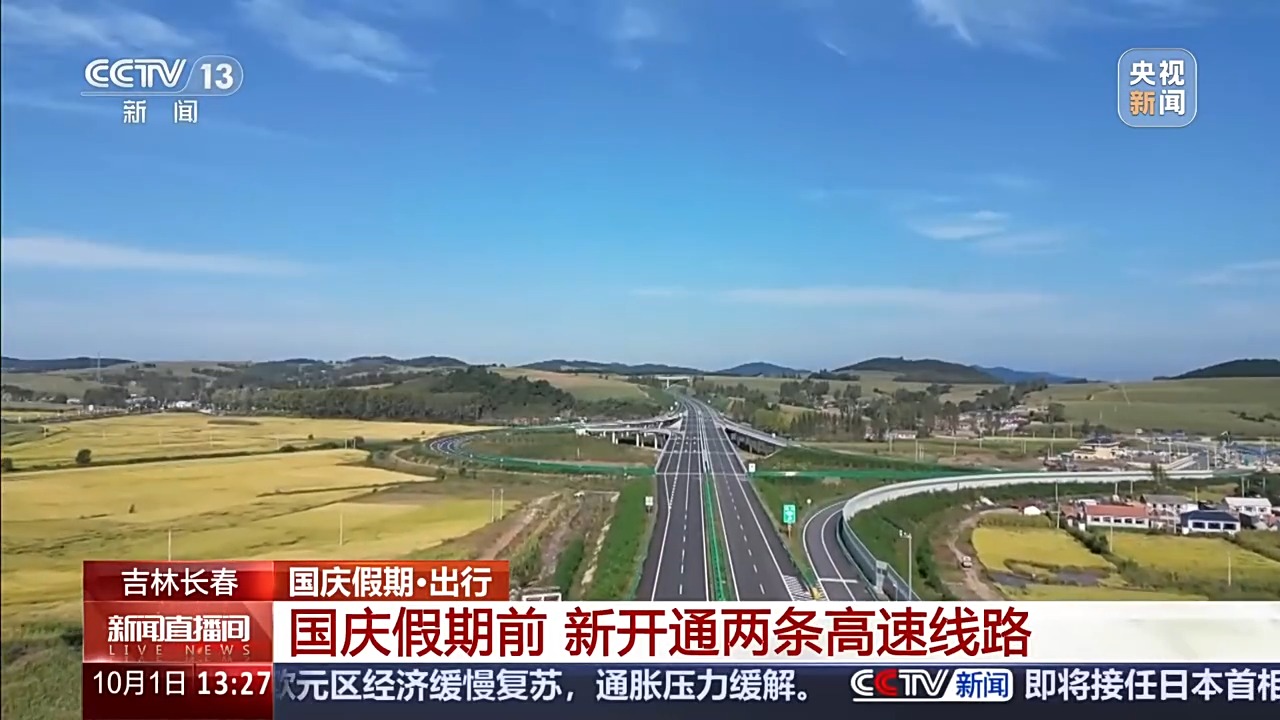 总台记者 苑竞玮:9月30日,吉林省延长高速烟筒山到双阳西段建成通车了,这条与9月28日通车的长太高速也就是长春到太平川高速公路,共同为十一假期出行提供了两条快速出游通道。公路通行最大程度上宣传吉林的文旅,同时也对周边的乡村振兴以及带动社会经济发展都有一定的作用。
