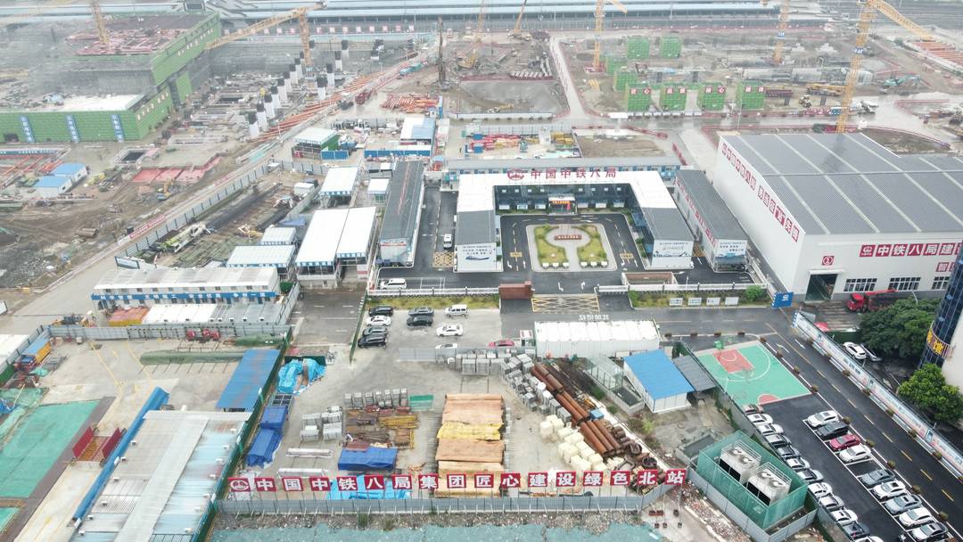 成渝中线高铁始发站——成都火车站的建设现场,中铁八局成都车站站房项目部60余名管理人员全部坚守岗位,200余名工人奋战现场。履带吊、全回转钻机、旋挖钻机等大型机械设备根据工序的要求,全速跟进。
